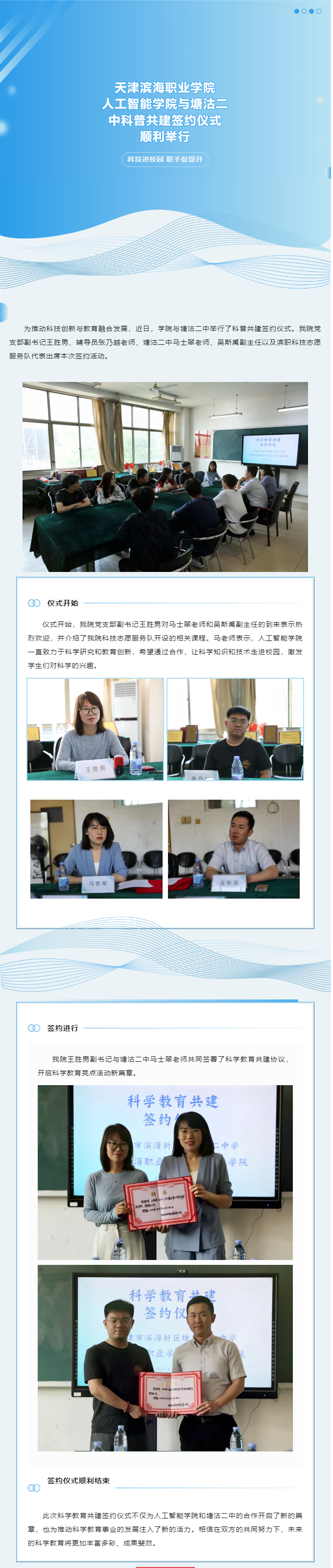 助力新区科学教育·擦亮学校创新名片我院与塘沽第二中学签订科普共建协议 来源:本站原创 发布时间:2024-05-27 17:43:55 浏览次数: 次 【字体:小 大】 终审:rgznxysh2 分享到: 【打印正文】